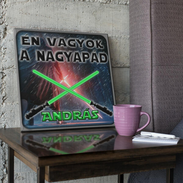 Igazi Star Wars rajongó nagyapukák számára készítettük el ezt a személyre szabható Star Wars vászonkép ajándékot. Ne hagyd ki ezt a lehetőséget, hogy megmutasd nagyapukádnak, mennyire fontos számodra! Adj neki egy olyan ajándékot, ami egyszerre személyes, exkluzív és tele van Star Wars varázslattal. Ha a fénykard és a név színén is szeretnél változtatni akkor a név m