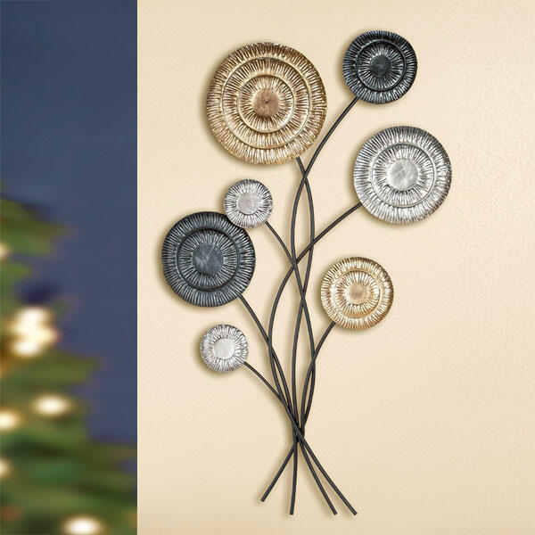 Hatalmas 102cm-es Bonito fém fali dekoráció arany, ezüst és antracit színben. A fém fali dekoráció mérete: 62x2,5x102cm