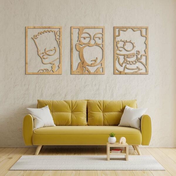 A kedvenc sárga család most egy különleges, többrészes faképen örökítődik meg. A Simpson család, mint az animációs sorozatok ikonja, nemcsak a gyerekek, hanem a felnőttek szívét is meghódította. Ez a háromrészes fakép, mely a Simpson családot ábrázolja, tökéletes díszítő elem lehet nappaliba vagy gyerekszobába. Ideális ajándék minden popkultúra rajongónak és so