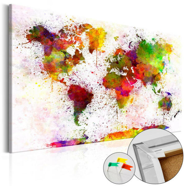 A parafára helyezett "Kép parafán - Artistic World [Cork Map]" kép nagyszerű az eredeti falidíszt kereső személyek számára. A környezetbarát anyag és az érdekes "Kép parafán - Artistic World [Cork Map]" minta azt eredményezik, hogy a sima parafatábla egy stílusos kiegészítővé válik, melyet többféleképpen is fel lehet használni. A parafára helyezett képre rajzszegeket