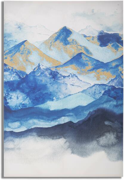 A MOUNTAIN nyomtatott képen megpihenhet a szemed, ha szeretnél a nappaliban vagy hálószobában inspirálódni és feltöltődni. A kék árnyalatai az arannyal kombinálva finom kontrasztot hoznak létre és luxust idéző megjelenést kölcsönöznek a helyiségeknek. Az impresszionizmus ihlette, lenyűgöző alkotás fák felett tornyosuló, meredek hegyvonulatokat ábrázol. Termetes méret