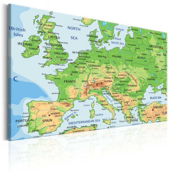 k-C-0025-b-a A magas minőségű "Map of Europe" képet speciális flíz vászonra nyomtatjuk. Ez a sok, boltunkban megrendelhető eredeti minták egyike. Legjobb minőségű nyomtatás! A speciális vászon a megfelelő nyomtatási minőséggel együtt garantálja a kép tökéletes minőségét, valamint a színek mélységét. Nyomtatott szélek A kép nem igényel keretet, egyből felakasztás