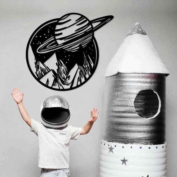 Fa falikép gyerekszobába - Az Űr a Szaturnuszt, a csillagokat és az űrbeli hegyeket ábrázolja. A gyerekeknek szánt falikép fiúk és lányok szobájába is alkalmas, ahol felkelti a fantáziát. A bolygó fakép az űrben ideális kiegészítő a gyerekszobába, ahol felkelti az érdeklődést az űr és annak titkai iránt. A termék fő előnyei: Kiváló ajándék gyerekeknek Egyszerű