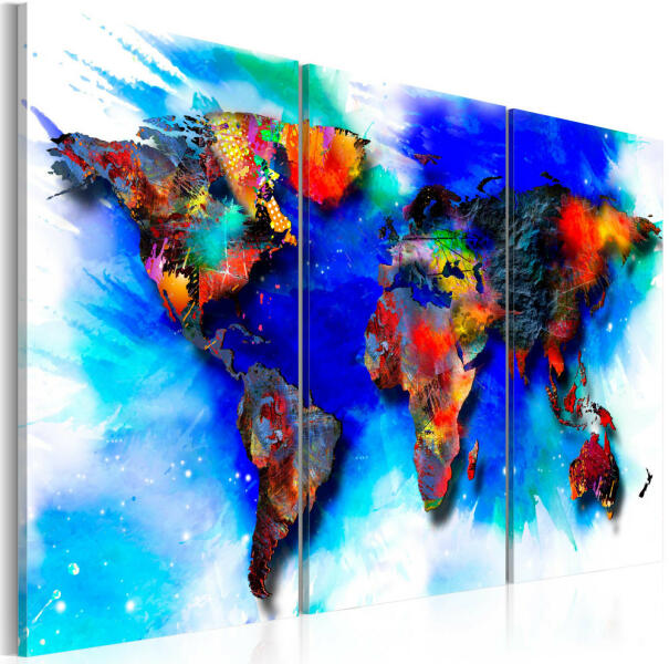k-A-0012-b-f A magas minőségű "Rainbow map" képet speciális flíz vászonra nyomtatjuk. Ez a sok, boltunkban megrendelhető eredeti minták egyike. Legjobb minőségű nyomtatás! A speciális vászon a megfelelő nyomtatási minőséggel együtt garantálja a kép tökéletes minőségét, valamint a színek mélységét. Nyomtatott szélek A kép nem igényel keretet, egyből felakasztásra