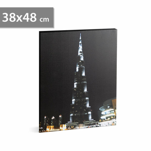 LED-es fali hangulatkép - "Burj Khalifa" - 2 x AA, 38 x 48 cm Díszítse LED-ekkel szerelt fali képpel otthonát, irodáját. Ez a különleges fali dekor minden helyiségben jól mutat, egyedivé téve az enteriőrt. Energiatakarékos LED-es működéséről 2 db AA elem gondoskodik. Hosszantartó elemes működés ON / OFF kapcsoló a képkeret oldalán 10 db LED Méret:38 x 48 x 1,5 cmAkaszt