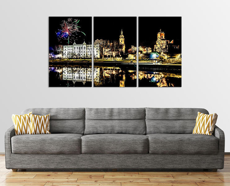 Tűzijáték Győr 3 részes vászonkép/ Méret: 100cm X 55cm A kedvelt turisztikai célpont, egyetemi és sportközpont Győr modern falikép formájában díszítheti otthonát! Győr egy megyei jogú város Magyarországon, Nyugat-Dunántúl régió központja, Győr-Moson-Sopron megye és a Győri járás székhelye. A Bécs–Pozsony–Budapest innovatív tengelyen fekszik, kiváló közleke