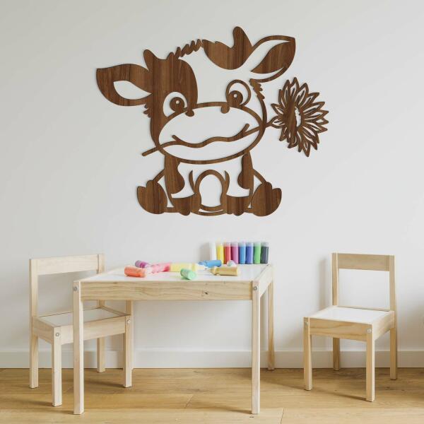 Fa falmatrica - A mesés borjú életre kelti a gyerekszoba üres falait. A bájos öntapadós matrica környezetbarát módon készült fából, és örömet hoz a gyerekeknek. A 3D fa matricát a falra, szekrényre vagy gyerekbútorra helyezheti. A cuki gyerek matrica vidám és játékos hangulatot teremt a szobában. A termék fő előnyei: Széles mintaválaszték Ideális ajándék gyerekekn