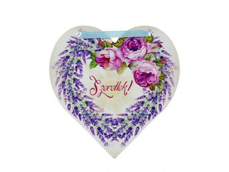 Szív tábla Szeretlek levendula koszorú 20cm 02220 - Falikép Befoglaló méretek 19x0.5x20 cmAnyaga fa