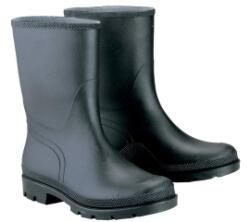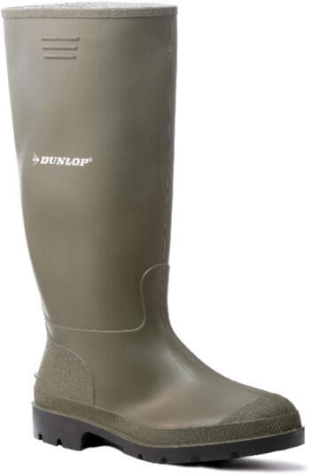 Dunlop fekete színű tiszta PVC munkacsizma általános ipari és mezőgazdasági felhasználásra; ellenáll savaknak, lúgoknak, fertőtlenítőszereknek; alaktartó formai kialakítás, vastag, fröccsöntött, csúszásbiztos talp; -20 °C-ig használható, csizmabéléssel téliesíthető; széles, kényelmes szár-, lábfej- és orr-rész, könnyen felhúzható