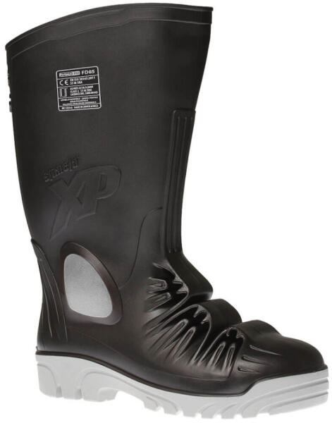 A Total védőcsizma tökéletes S5 védelmet nyújt viselőjének. Acél orrmerevítő és acél talpátszúrás elleni védelem. PVC/Nitril szerkezet, amely vízálló és ellenáll az olajnak, üzemanyagoknak és savaknak. Többféle területen is jól használható Sarokvédő Megerősített bokavédelem Teljesen vízálló Dupla sűrűségű PVC/Nitril konstrukció Védő acél lábfej Talpá