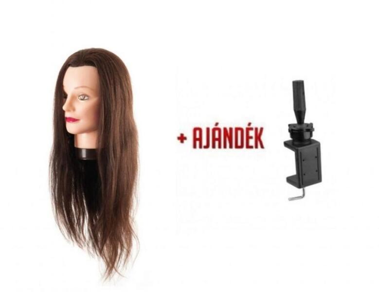 Eurostil babafej humán hajjal, 55-60 cm + AJÁNDÉK TARTÓ- 100%-ban emberi hajból készült - Alkalmas meleg hajformázáshoz is: Hajvasaló, hajsütővas, hajszárító - Marcell hullám is készíthető vele - Vegyszeres munkákhoz is használható: Festés, dauer - Barna hajszín - A babafej hajhosszúsága: 55-60 cm - Asztali babafej tartóval együtt szállítjuk