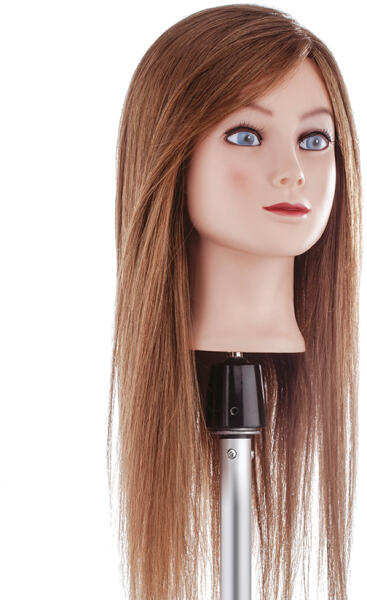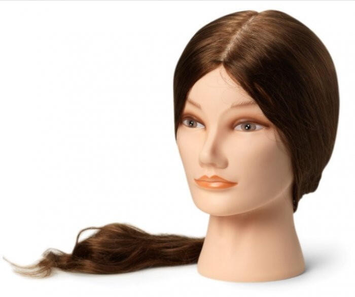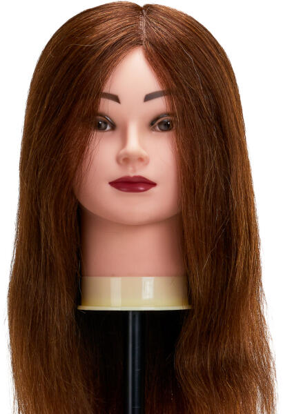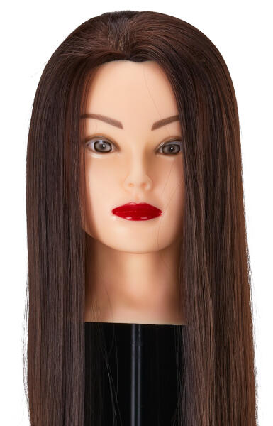 Sibel babafej humán hajjal, 55-60 cm - Női gyakorló babafej - Modellező babafej 100%-ban természet emberi hajjal - Ajánljuk hajvágás, hajformázás gyakorlásához és valamennyi vegyszeres és mechanikus fodrászati tevékenységhez - Alkalmas hajszárításra, hajvasalásra és hajsütésre is - A babafej hajszíne: Sötétbarna - A babafej hajhosszúsága: 55-60 cm A Sibel babafej humá