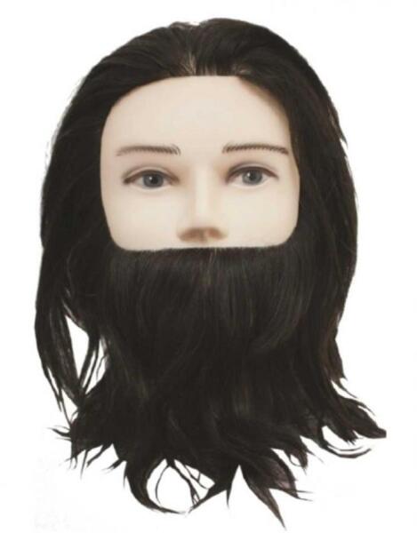Calcagni férfi szakállas babafej humán hajjal, 18 cm- Tanuló babafej 100% humán emberi hajjal - Férfi gyakorló babafej szakállal és bajusszal - A babafej hajhosszúsága: 18 cm