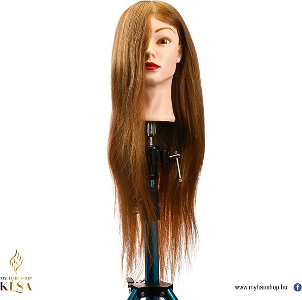 Termék név: KIRA női babafej Anyaga: 90% humán Haj színe: világosbarna Haj hossza:50-55 cm haj Minőségi könnyen kezelhető finom tapintású haj Vegyszeres műveletnél a kìvánt eredmény nem garantált Vágás – sütés- vasalás -konty -fonás gyakorlásához ideális Fodrászoknak ajánljuk festéshez , vegyszeres művelethez vagy bármilyen divatfrizura vágásához. Válaszd bát