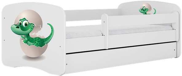 Babydreams fehér kis dínó ágy fiók nélkül, kókusz matrac 140/70 A Babydreams ágy a gyermeki fantázia beteljesülése, mellyel mesebeli földre utazhatnak a kicsik. Az átgondolt megoldások és színválasztékok úgy lettek kialakítva, hogy korlátlanul serkentsék képzeletét. A korláttal ellátott egyszemélyes ágy kiváló minőségű 18 mm vastag bútorlapból készült. Több m