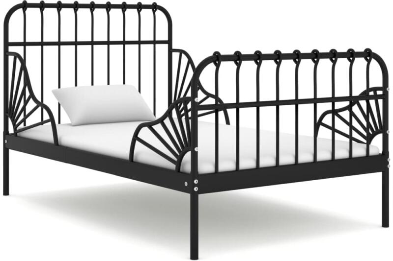 vidaXL kihúzható fekete fém ágykeret 80 x 130/200 cm Aludjon egy jót ebben a kihúzható ágykeretben! Az erős szerkezetű ágy porszórt acélból készült, így rendkívül tartós és strapabíró. A szükséges támasztékot és kényelmet a masszív lécek nyújtják. Ön minden éjjel nagyszerűen alhat ebben az ágyban! Állítható hosszának köszönhetően ez a fém ágykeret megf