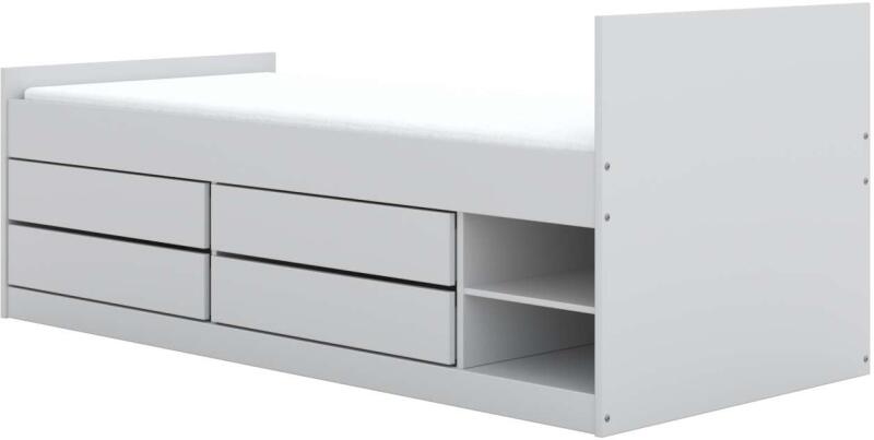 Leon fehér 200-as ágy matraccal LEON ÁGYA Leon ágy tökéletes megoldás egy modern hálószobába, amely a funkcionalitást az esztétikával ötvözi. Kiváló minőségű anyagokból készült, tartósságot és eleganciát kínál. Az átgondolt tárolási megoldások polcok és fiókok formájában lehetővé teszik a helyiség rendben tartását. Ezenkívül az önálló összeszerelés