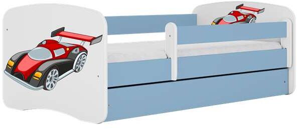 Babydreams kék versenyautó ágy fiókkal, latex matraccal 140/70 A Babydreams ágy a gyermeki fantázia beteljesülése, mellyel mesebeli földre utazhatnak a kicsik. Az átgondolt megoldások és színválasztékok úgy lettek kialakítva, hogy korlátlanul serkentsék képzeletét. A korláttal ellátott egyszemélyes ágy kiváló minőségű 18 mm vastag bútorlapból készült. Több méret