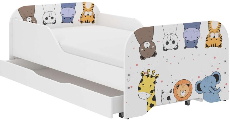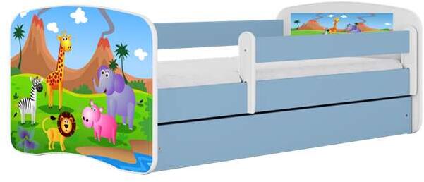 Babydreams kék szafariágy fiókkal, latex matrac 140/70 A Babydreams ágy a gyermeki fantázia beteljesülése, mellyel mesebeli földre utazhatnak a kicsik. Az átgondolt megoldások és színválasztékok úgy lettek kialakítva, hogy korlátlanul serkentsék képzeletét. A korláttal ellátott egyszemélyes ágy kiváló minőségű 18 mm vastag bútorlapból készült. Több méretben és s