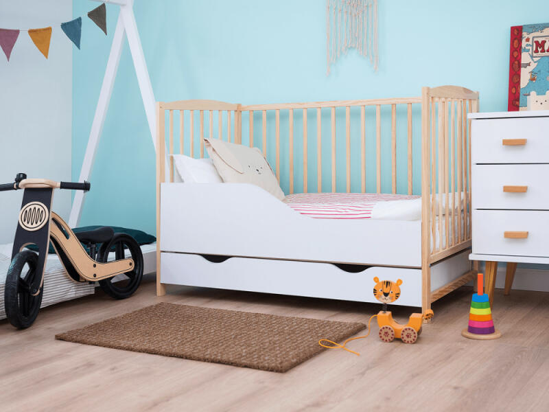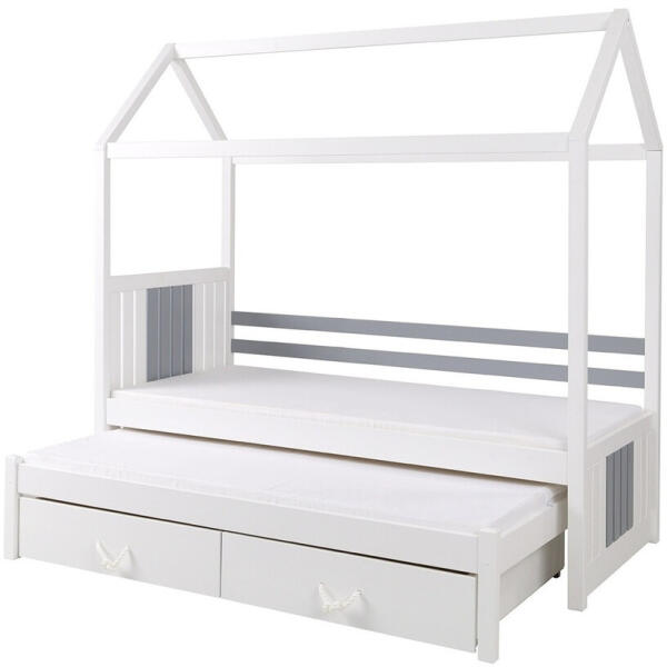 Az ár tartalmazza a ágyrácsott, ágyneműtartó fiókot és a leesésgátlót. Az ágy méretei , tulajdonságai: belső szélesség (matracszélesség): 60 cm belső hossza (matrachossz): 120 cm külső szélesség: 65 cm külső hossz: 124 cm a felső felső magassága: 86 cm alsó ágyoldal magassága: 86 cm elem vastagsága: 2,5 cm állítható alvásmagasság 3 levehető létrafok az ágy