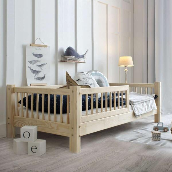 Ez a 80x160 cm-es skandináv stílusú gyerekágy fenyő rétegelt lemezből készült. Az elemek simára csiszoltak és lekerekítettek. A natúr kivitel a kezeletlen nyersfa változatot jelenti. Az elülső leesésgátló rács levehető, mindkét oldalra (jobb-bal) rögzíthető. Figyelem! További lyukak láthatók az elülső ágykereten és a függőleges tartóelemeken. A rács magassága a