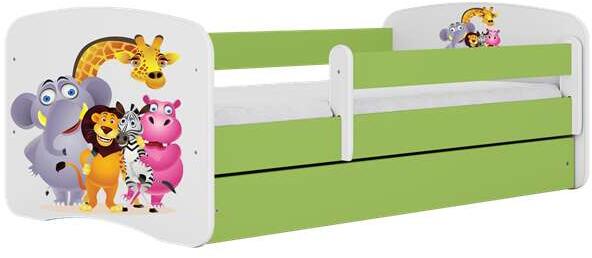 Babydreams zöld állatkerti ágy fiók nélkül, kókusz matrac 140/70 A Babydreams ágy a gyermeki fantázia beteljesülése, mellyel mesebeli földre utazhatnak a kicsik. Az átgondolt megoldások és színválasztékok úgy lettek kialakítva, hogy korlátlanul serkentsék képzeletét. A korláttal ellátott egyszemélyes ágy kiváló minőségű 18 mm vastag bútorlapból készült. Több m