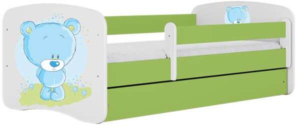 Babydreams zöld kék maci ágy fiók nélkül, kókusz matrac 160/80 A Babydreams ágy a gyermeki fantázia beteljesülése, mellyel mesebeli földre utazhatnak a kicsik. Az átgondolt megoldások és színválasztékok úgy lettek kialakítva, hogy korlátlanul serkentsék képzeletét. A korláttal ellátott egyszemélyes ágy kiváló minőségű 18 mm vastag bútorlapból készült. Több mé