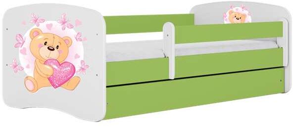 Babydreams ágy zöld mackó pillangók fiókos latex matraccal 160/80 A Babydreams ágy a gyermeki fantázia beteljesülése, mellyel mesebeli földre utazhatnak a kicsik. Az átgondolt megoldások és színválasztékok úgy lettek kialakítva, hogy korlátlanul serkentsék képzeletét. A korláttal ellátott egyszemélyes ágy kiváló minőségű 18 mm vastag bútorlapból készült. Több m
