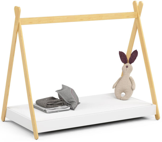 Modern és praktikus 160x80 cm-es gyerekágy matraccal és ágyráccsal, amely tökéletes választás a gyerekszobába. A fehér színű, sátor formájú kialakítás egyedi megjelenést kölcsönöz, míg a 150 kg-os teherbírás tartós használatot biztosít. Stílusos és biztonságos pihenés gyermeke számáraAz AKORD GEM Tipi gyerekágy egy innovatív és sokoldalú bútor, amely ötvözi