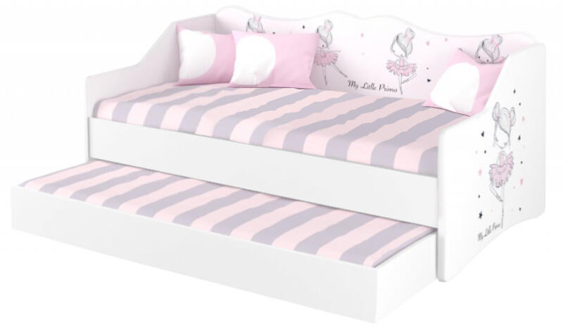 Gyerekágy 160x80 cm a Ballerina lányos bútorkollekcióból. A bútor minőségi laminált deszkából (DTD) készül. A természetes anyagok felhasználásának köszönhetően 100%-ban ökológiai, biztonságos és egészségre nem káros. Az ágy gyerekágy színes nyomtatott mintája speciális laminálttal biztosított. Mosogatószerrel könnyen tisztítható. Tökéletesen illik a Ballerin