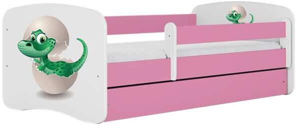 Babydreams rózsaszín kis dínó ágy fiók nélkül latex matrac 140/70 A Babydreams ágy a gyermeki fantázia beteljesülése, mellyel mesebeli földre utazhatnak a kicsik. Az átgondolt megoldások és színválasztékok úgy lettek kialakítva, hogy korlátlanul serkentsék képzeletét. A korláttal ellátott egyszemélyes ágy kiváló minőségű 18 mm vastag bútorlapból készült. Több
