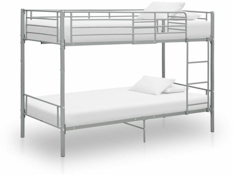 vidaXL szürke fém emeletes ágy 90 x 200 cm Ez a fém emeletes ágy elegáns és praktikus, így minden kisméretű szobában tökéletes kiegészítő. Kiváló választás a gyerekszobába, mivel élvezetesebbé teszi a lefekvést! Emeletes ágyunk robusztus fémből készült porszórt bevonattal, így nagyon stabil és tartós. A biztonság érdekében az emeletes ágy teljes hosszában fut