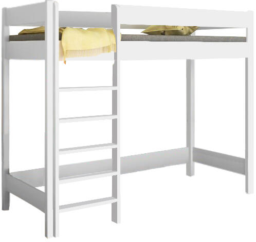 Fehér színű HUGO PRED emeletes ágy, amely nagyon praktikus, ugyanis az ágy alatti teret jól ki tudják használni. Az emelt ágy alatti tér ideális a tanulásra, a játékra vagy csak a pihenésre. A létra kétoldalas, az ágy mindkét oldalára felszerelhető, tehát univerzális. Az ágy tömör fából és DTD bútorlapból készül. Az ágy részét képezi a 150 kg teherbírású lé