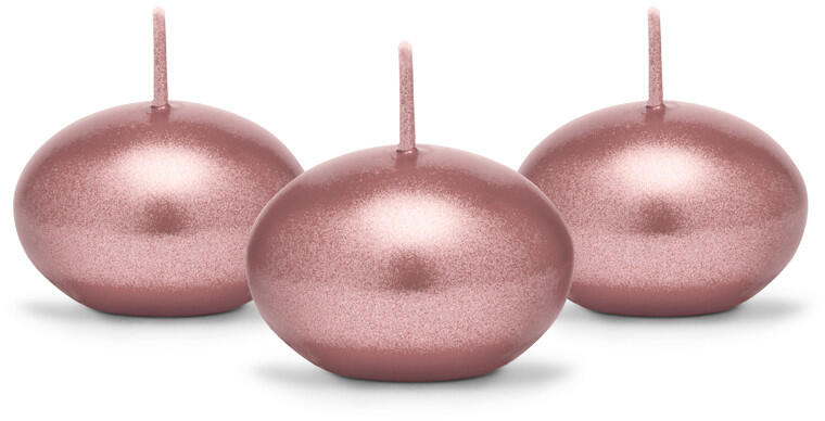 Úszógyertyametál csillogással, rózsaarany / rosegold színben, mérete kb. 4 cm. Égési idő 1 db kb. 2 óra.