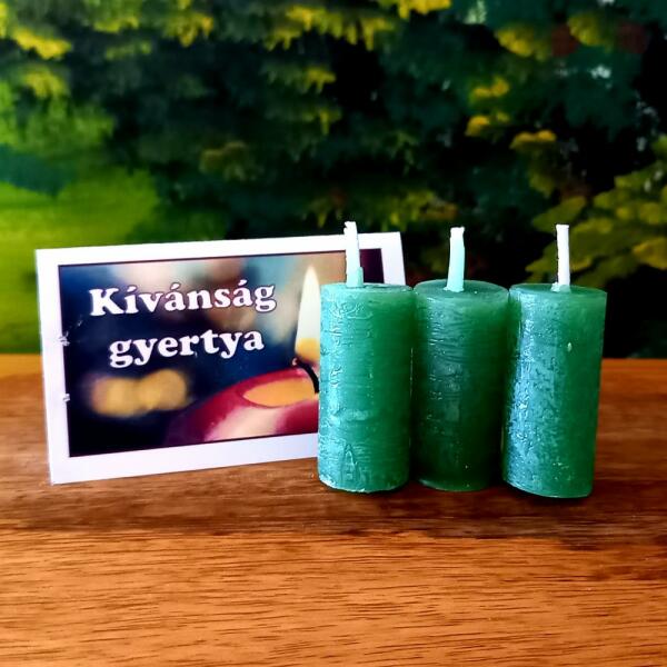Kívánság gyertya színe: zöld Nettó tömeg: 30 gramm Égési idő: kb 1 óra A csomag tartalma 3 darab gyertya 4 cm magas