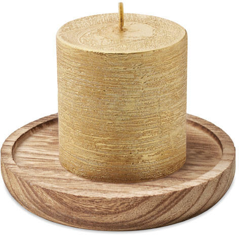 Gyertya kerek fa talpon 88gr Kerek formájú, fából készült dekoratív tartó vanília illatú gyertyával.