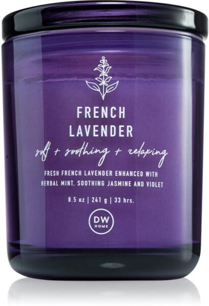 DW Home Prime French Lavender, 241 g, Illatgyertyák Illatok lakásba, Az otthonát csodálatos aromával illatosító DW Home Prime French Lavender illatgyertya olyan meghitt hangulatot teremt, melynek köszönhetően mindig remekül érzi majd magát. Tulajdonságok: gyógyfüves aroma virágos illat Összetétel: kókuszviasz tartalommal Használata: A mécsest kellően hőálló felületre hel