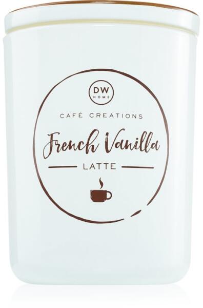DW Home Cafe Creations French Vanilla Latte, 434 g, Illatgyertyák Illatok lakásba, Az otthonát csodálatos aromával illatosító DW Home Cafe Creations French Vanilla Latte illatgyertya olyan meghitt hangulatot teremt, melynek köszönhetően mindig remekül érzi majd magát. Összetétel: esszenciális olajokkal Használata: A mécsest kellően hőálló felületre helyezze. 4 óránál hoss