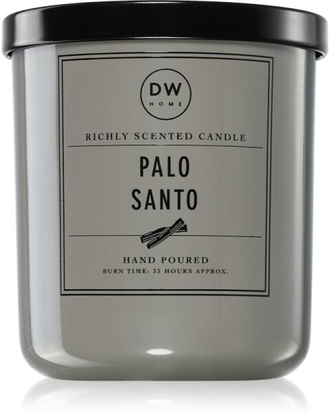 DW Home Signature Palo Santo, 263 g, Illatgyertyák Illatok lakásba, Az otthonát csodálatos aromával illatosító DW Home Signature Palo Santo illatgyertya olyan meghitt hangulatot teremt, melynek köszönhetően mindig remekül érzi majd magát. Tulajdonságok: fás illat fűszeres aroma Összetétel: kókuszviasz tartalommal Használata: A mécsest kellően hőálló felületre helyezze. 4