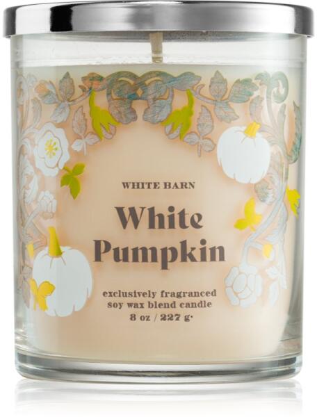 Bath & Body Works White Pumpkin, 227 g, Illatgyertyák Illatok lakásba, Az otthonát csodálatos aromával illatosító Bath & Body Works White Pumpkin illatgyertya olyan meghitt hangulatot teremt, melynek köszönhetően mindig remekül érzi majd magát. Tulajdonságok: melengető illat őszi illat Összetétel: esszenciális olajokkal Használata: A mécsest kellően hőálló felület
