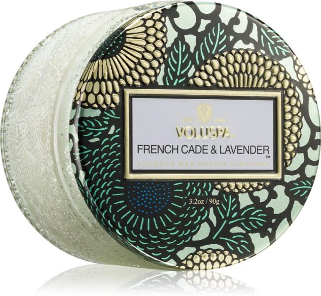 VOLUSPA Japonica French Cade Lavender, 90 g, Illatgyertyák Illatok lakásba, Az otthonát csodálatos aromával illatosító VOLUSPA Japonica French Cade Lavender illatgyertya olyan meghitt hangulatot teremt, melynek köszönhetően mindig remekül érzi majd magát. Tulajdonságok: fás illat dizájnos csomagolás nyári illat Összetétel: kókuszviasz tartalommal Használata: A mécsest kellő