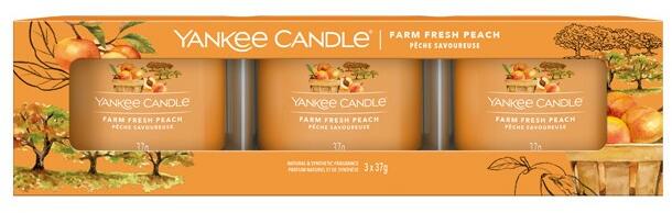 A szett tartalma: Illatgyertya üvegben Farm Fresh Peach 3 x 37 g