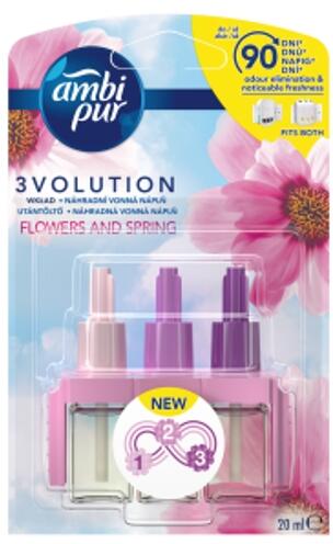 Az Ambi Pur 3volution Flowers & Spring frissítő virágillattal illatosítja otthonát 45 percenként 3 egymást kiegészítő illat váltakozik – ennek köszönhetően még mindig érezheti az illatot a szobában Ez egy tartalék patron, amelyet a 3volution elektromos géphez terveztek Az OdourClean technológia folyamatosan megszünteti a nem kívánt szagokat Napi 12 órás használat es