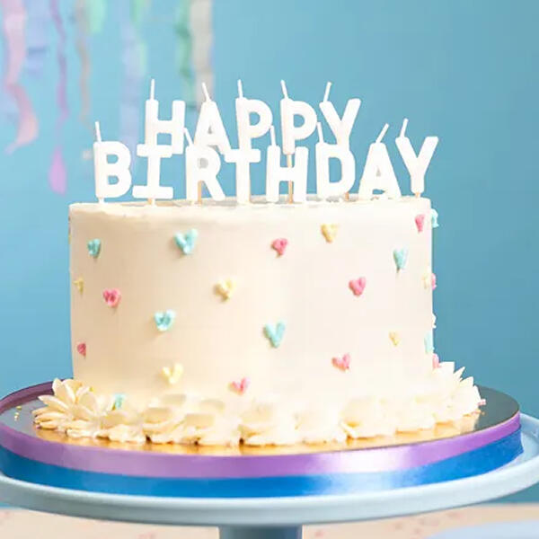 Happy Birthday betű gyertya, fehér. 2,5 cm.