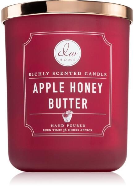 DW Home Prime Apple Honey Butter, 434 g, Illatgyertyák Illatok lakásba, Az otthonát csodálatos aromával illatosító DW Home Happiness illatgyertya olyan meghitt hangulatot teremt, melynek köszönhetően mindig remekül érzi majd magát. Tulajdonságok: gourmand illat édes aroma kézzel készített Összetétel: esszenciális olajokkal Használata: A mécsest kellően hőálló felületre