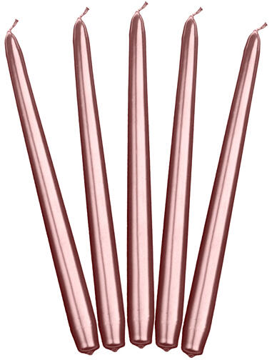 Hosszúkás gyertya, rosegold színben. 24 cm hosszú a gyertya, körülbelül 5 órát ég egy gyertya. Egy csomagban 10 darab gyertya található, az ár a 10 darabra értendő.