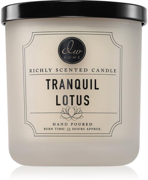 DW Home Signature Tranquil Lotus, 269 g, Illatgyertyák Illatok lakásba, Az otthonát csodálatos aromával illatosító DW Home Signature illatgyertya olyan meghitt hangulatot teremt, melynek köszönhetően mindig remekül érzi majd magát. Tulajdonságok: tiszta púderes illat Összetétel: esszenciális olajokkal Használata: A mécsest kellően hőálló felületre helyezze. 4 óránál hos