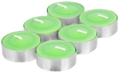 Klasszikus illatmentes teamécses gyertyatartóba vagy gyertyás lámpásba. Szín: zöld. A csomag 6 gyertyát tartalmaz.