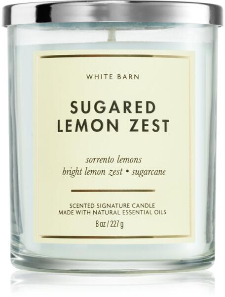 Bath & Body Works Sugared Lemon Zest, 227 g, Illatgyertyák Illatok lakásba, Az otthonát csodálatos aromával illatosító Bath & Body Works illatgyertya olyan meghitt hangulatot teremt, melynek köszönhetően mindig remekül érzi majd magát. Összetétel: esszenciális olajokkal Használata: A mécsest kellően hőálló felületre helyezze. 4 óránál hosszabb ideig ne hagyja égn