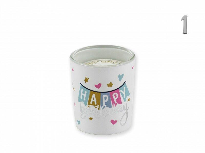 Gyertya üvegben Happy Birthday 6,5cm 3féle 04759 Varázsoljon könnyen és gyorsan meghitt hangulatot születésnapja ünnepléséhezA gyertya dekorált üvege nemcsak a party dekorációja lehet, de a gyertya fénye megnyugtató, a lélek gyógyítója is. 3 féle típus választhatóBefoglaló méretek 5.5x5.5x6.5 cmAnyaga paraffin, üveg